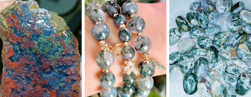 Achát mechový je velmi oblíbeným minerálem zejména ve šperkařství. Vyrábějí se z něj okouzlující náramky a náhrdelníky různých tvarů, též prsteny, v nichž achát mechový je mnohdy dominantním kamenem. Neméně populární jsou náušnice tvarované do nejrůznějších tvarů a také brože a ozdoby. Jeho přírodní vzor a barvy dodávají těmto šperkům velmi atraktivní a působivý vzhled.