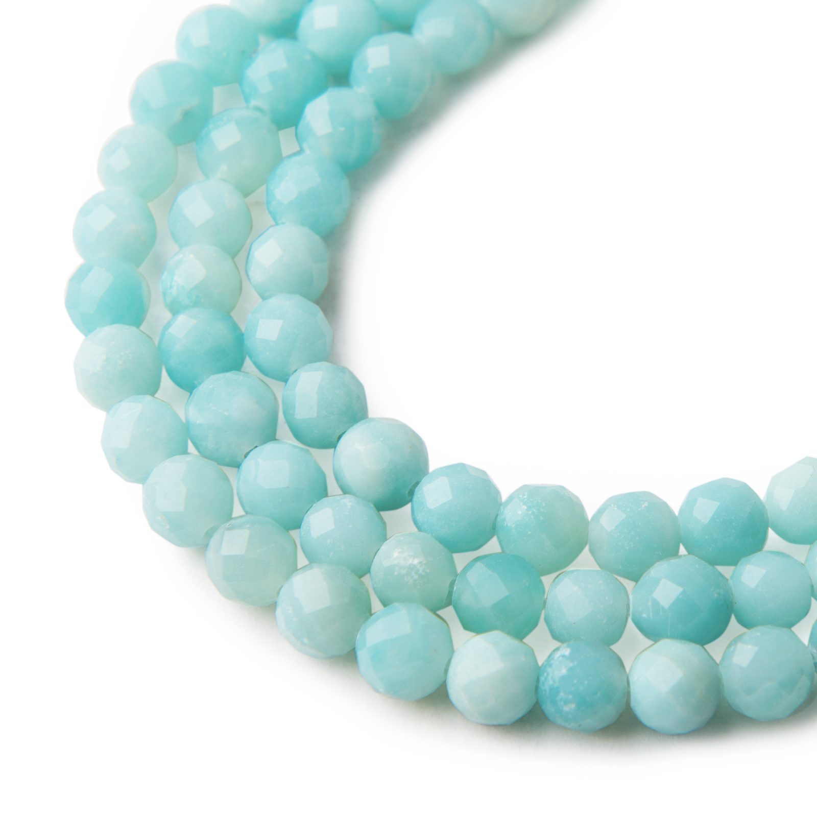 Amazonit modrý broušený (blue amazonite) ve velikosti 6 mm údajně pomáhá svého nositele ochránit před emisemi elektromagnetického záření, negativní energií a stresem. Má blankytně modrou barvu se světlejšími či tmavšími odstíny, které místy mohou být až do hněda. Amazonit modrý prý podporuje vyjadřování citů a emocí. Říká se, že má uklidňující účinky na tělo i mysl. Údajně má schopnost rozvíjet intuici a podpořit vnímání a rozpoznávání instinktů. Podle legend usnadňuje komunikaci a porozumění v mezilidských vztazích. Více o amazonitu modrém si přečtěte v našem článku o amazonitu.
