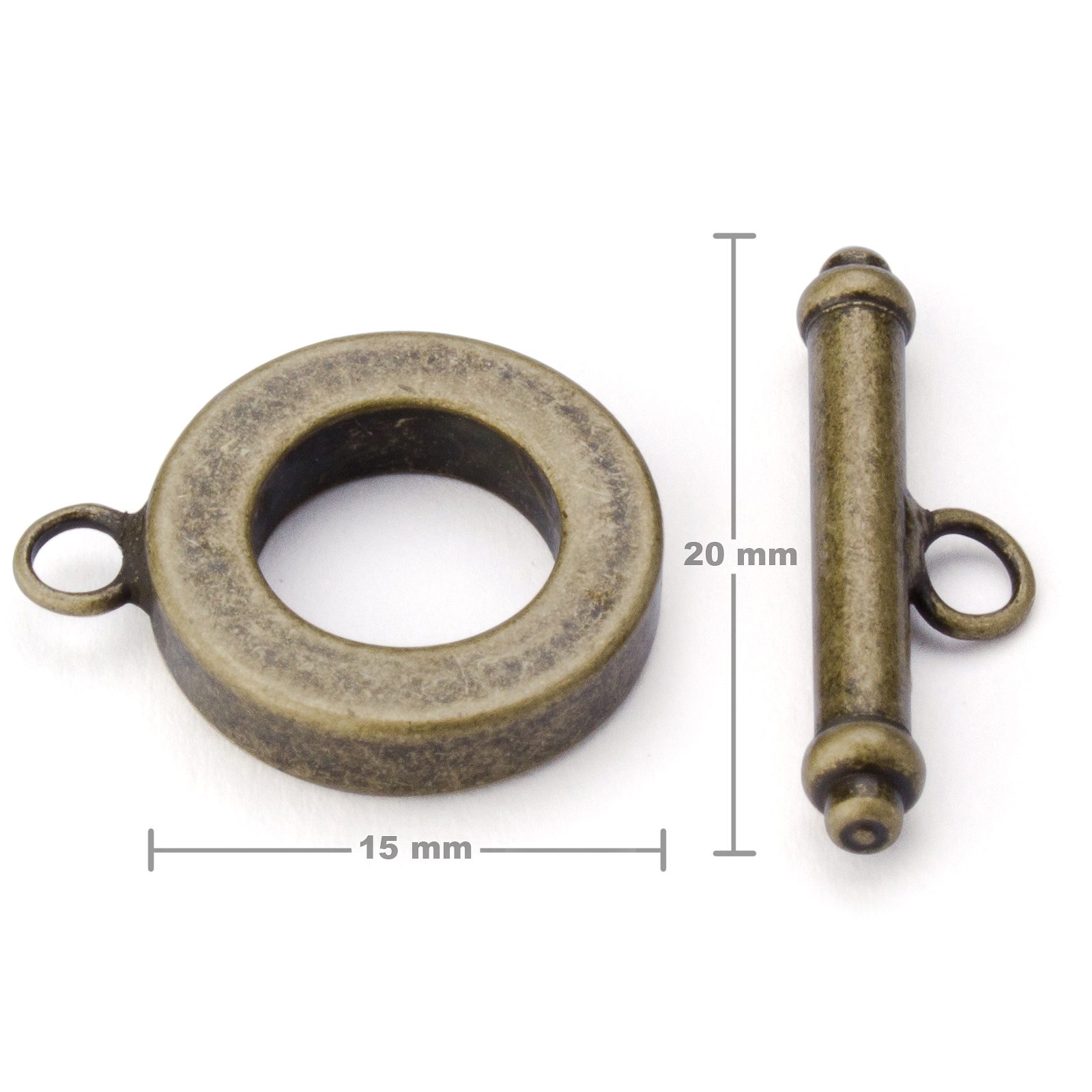 Americké zapínání 15mm staromosaz je dodáváno ve složení jedna tyčka a jeden kroužek. Uvedená velikost vystihuje průměr kroužku.