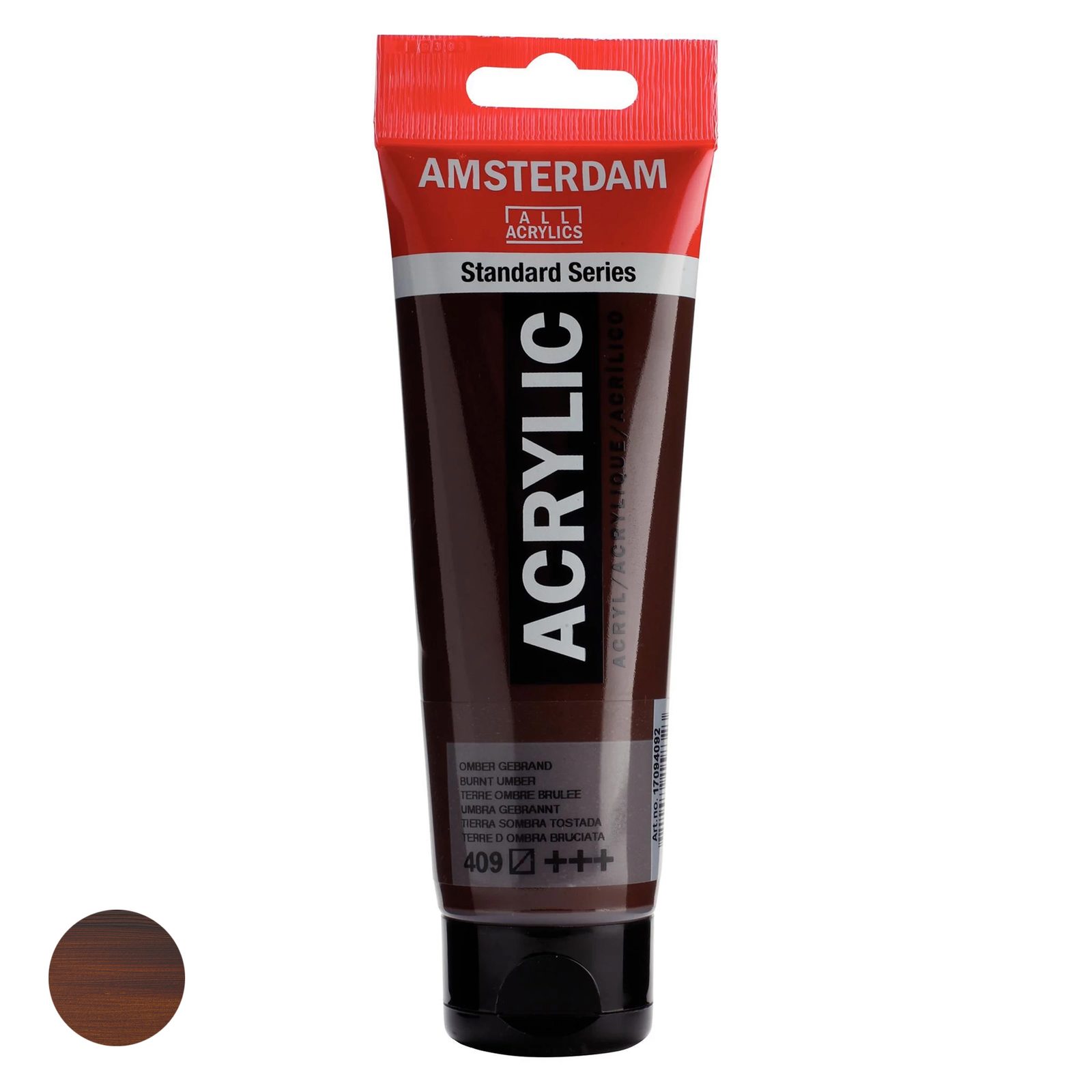 Akrylová barva v tubě Amsterdam Standart Series 120 ml 409 Burnt Umber je kvalitní akrylová barva od renomovaného holandského výrobce Royal Talens. Řada Amsterdam Standard Series je známá svými výjimečnými vlastnostmi a širokou škálou odstínů. Akrylové barvy jsou oblíbené díky své všestrannosti, rychlému schnutí a odolnosti. Výsledný obraz má vysokou trvanlivost a je odolný vůči vlivům prostředí. Jedna vrstva akrylové barvy schne zhruba 30 minut, což umožňuje umělcům pracovat efektivně a rychle. Akrylové barvy se používají pro celou řadu uměleckých technik a povrchů. Jsou ideální pro malbu na plátno, dřevo nebo papír. Jejich rychlé schnutí umožňuje také snadné vrstvení barev.
