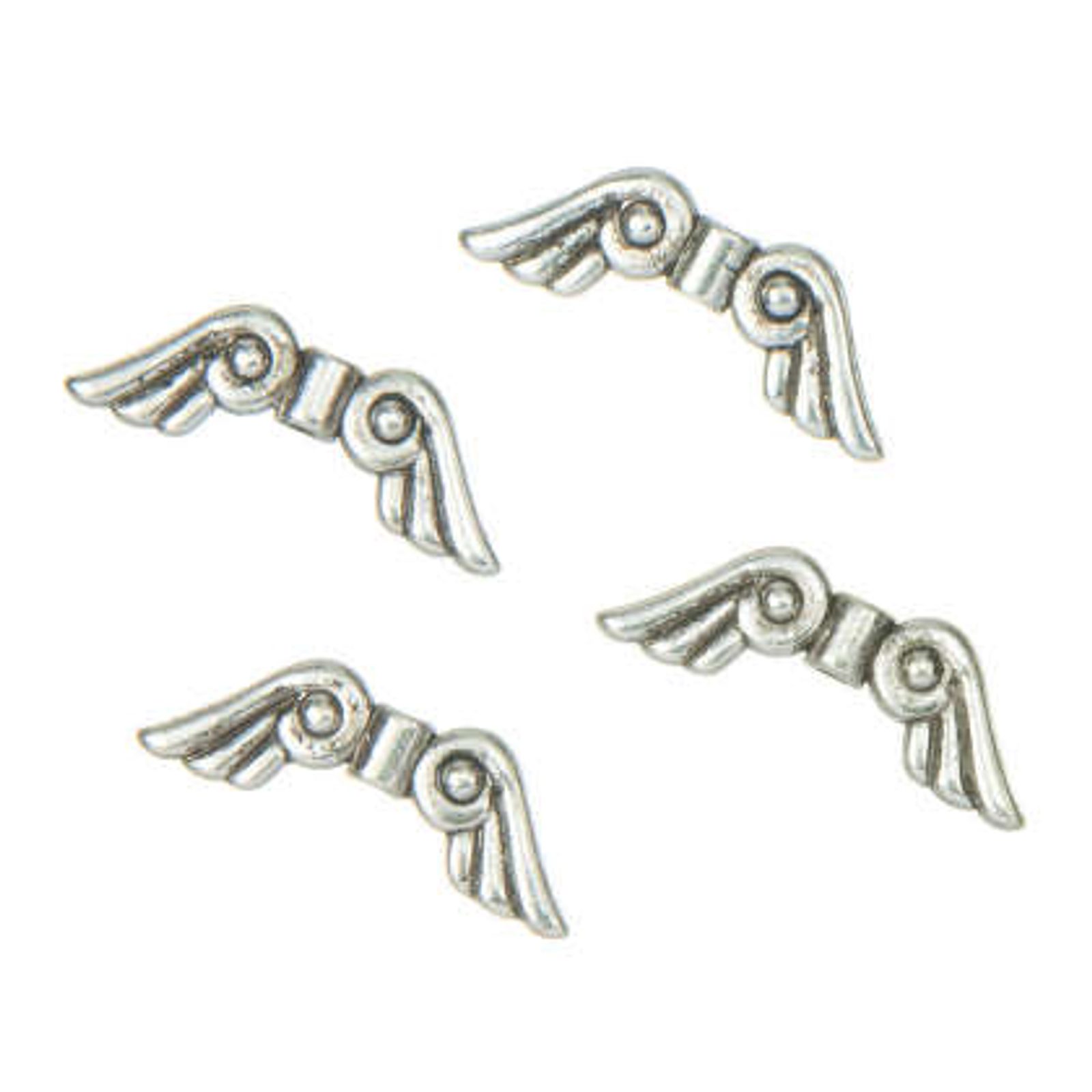 Andělská křídla 21x7,5mm stříbrná č.13 jsou kovové bezniklové komponenty určené k výrobě andělíčků z korálků. Jsou ideální pro použití s českými voskovými perličkami. Malé andělíčky můžete použít na náušnice, větší pak jako přívěsek nebo ozdoby na stromeček.
