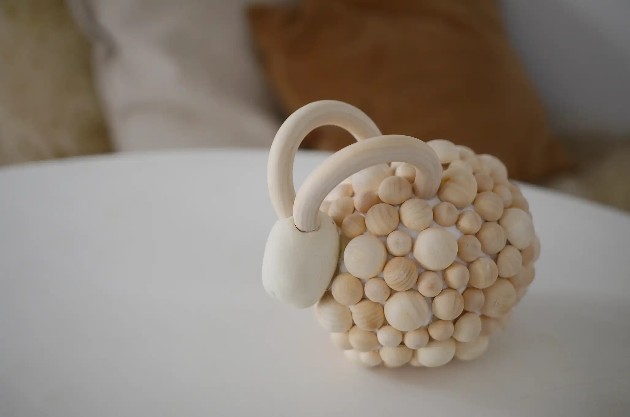 Z dekoračních polokoulí, dřevěných kroužků na macramé a samotvrdnoucí hmoty můžete podle návodu od naší autorky Báry vyrobit takového krásného beránka. Krásně bdue vypadat například za oknem nebo na velikonoční tabuli.