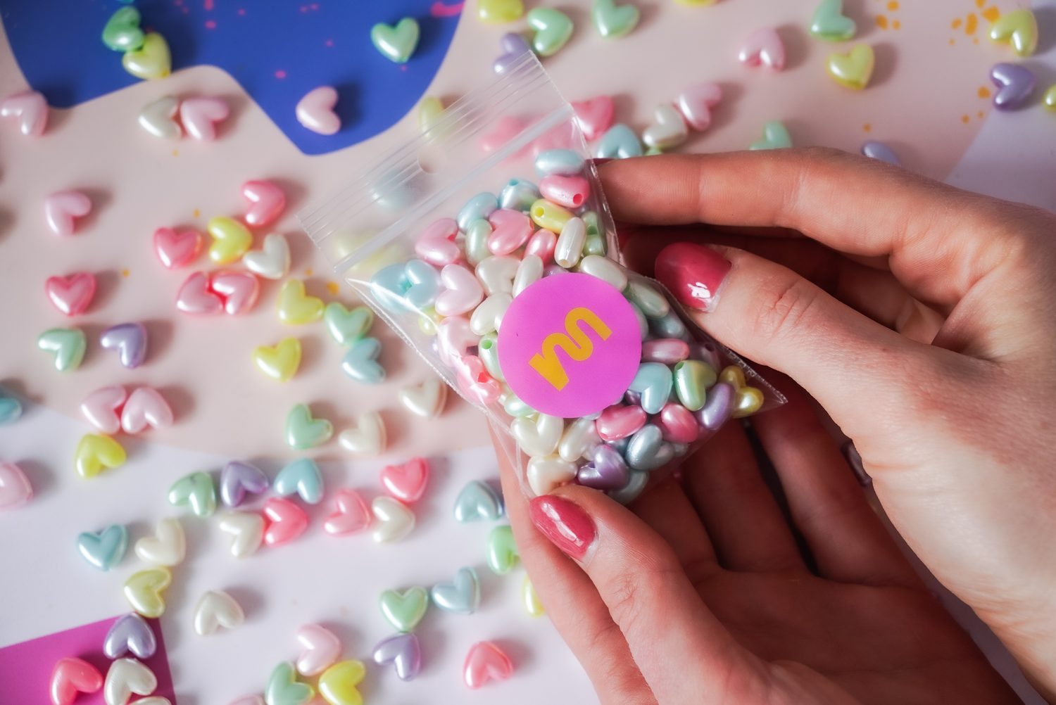 barvičky k jaru prostě patří a ty pastelové o to víc! Vytvořili jsme proto směsi plastových pastelových korálků ve tvaru srdíček.