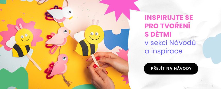 Děti se nebojí při tvoření používat svou fantazii, je proto škoda jejich schopnosti omezovat jen na malování na papír. Lepidlo, nůžky, zažehlovací korálky, modelování, navlékání nebo i jednodušší macramé děti s přehledem zvládnou, samozřejmě je třeba vzít v potaz věk a individuální schopnosti. Prohlédněte si návody na tvoření s dětmi v sekci Návodů a inspirace. Návody jsou zdarma, naopak nás velmi potěší, když výsledky své tvorby, inspirované právě v sekci Návodů označíte na sociálních sítích, abychom se spolu s vámi mohli radovat z hotového díla!