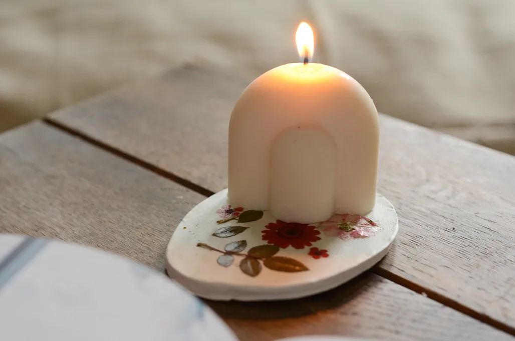 Samotvrdnoucí hmota je oblíbeným materiálem nejen pro tvoření s dětmi. Můžete z ní vytvořit i takovouhle originální podložku se sušenými květinami nebo třeba se třpytkami.