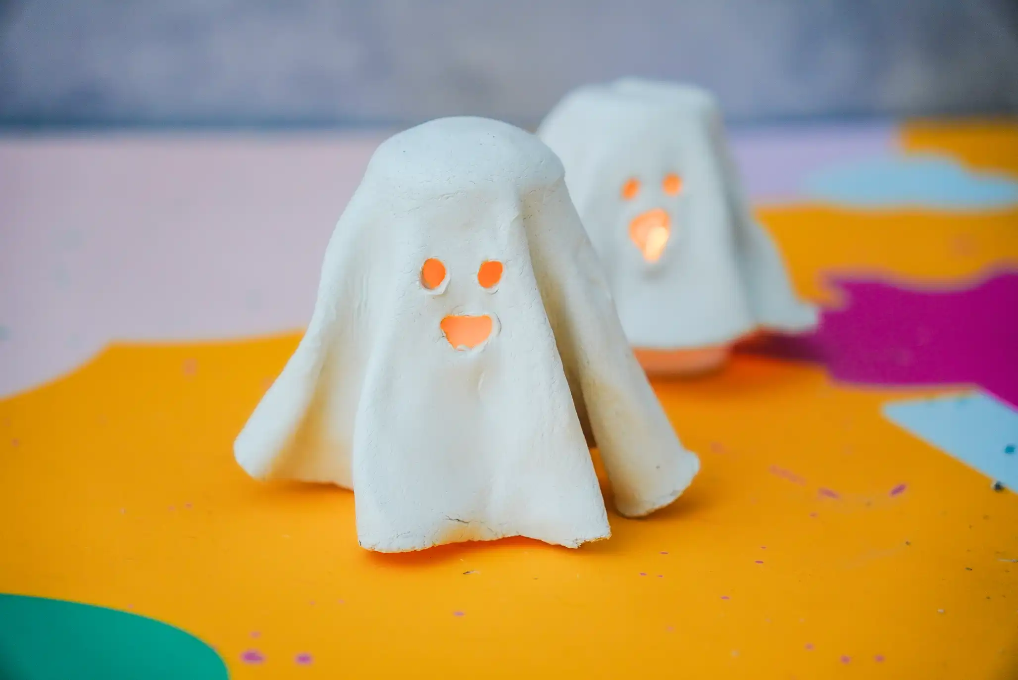 Další tip na návod, který opět jistě zvládnou s dozorem i děti, jsou tito duchové ze samotvrdnoucí hmoty. Pod ducha můžete dát například LED svíčku, která bude krásně (ale zároveň bezpečně) plápolat a dodá tu pravou halloweenskou atmosféru.