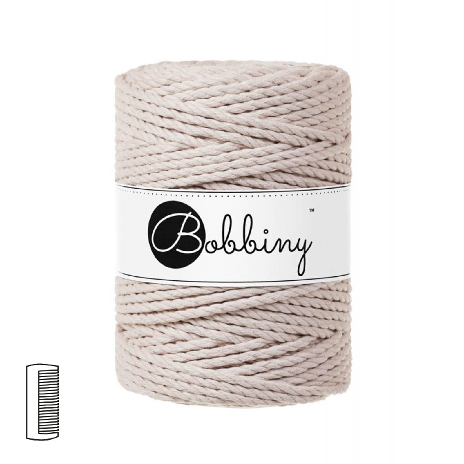 Bobbiny macramé příze XXL 3PLY 5mm Nude je vyrobena z recyklované bavlny, včetně cívky z recyklovaného papíru. Lze ji rozčesat. Trojitě stočené šňůry složené ze tří 20 nitkových šňůrek jsou společně pevnější, ale také se dají snadno oddělit pro další samostatné použití. Používají se při tvoření dekorací rustikálnějšího charakteru.