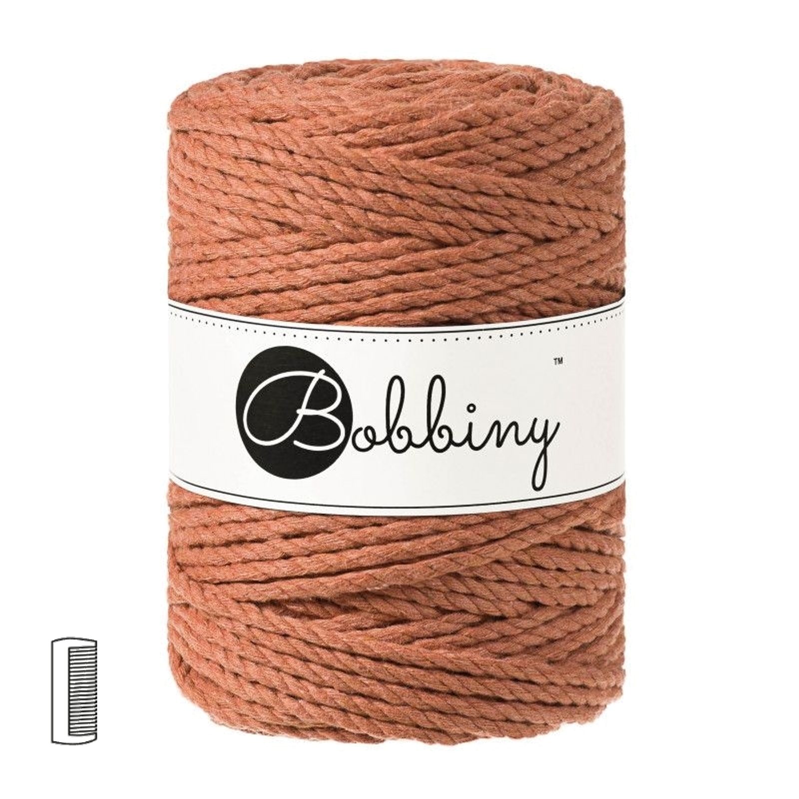 Bobbiny Macramé příze XXL 3PLY 5mm Terracota je vyrobena z recyklované bavlny, včetně cívky z recyklovaného papíru. Lze rozčesat. Trojitě stočené šňůry složené ze tří 20 nitkových šňůrek jsou společně pevnější, ale také se dají snadno oddělit pro další samostatné použití. Používájí se při tvoření dekorací rustikálnějšího charakteru.