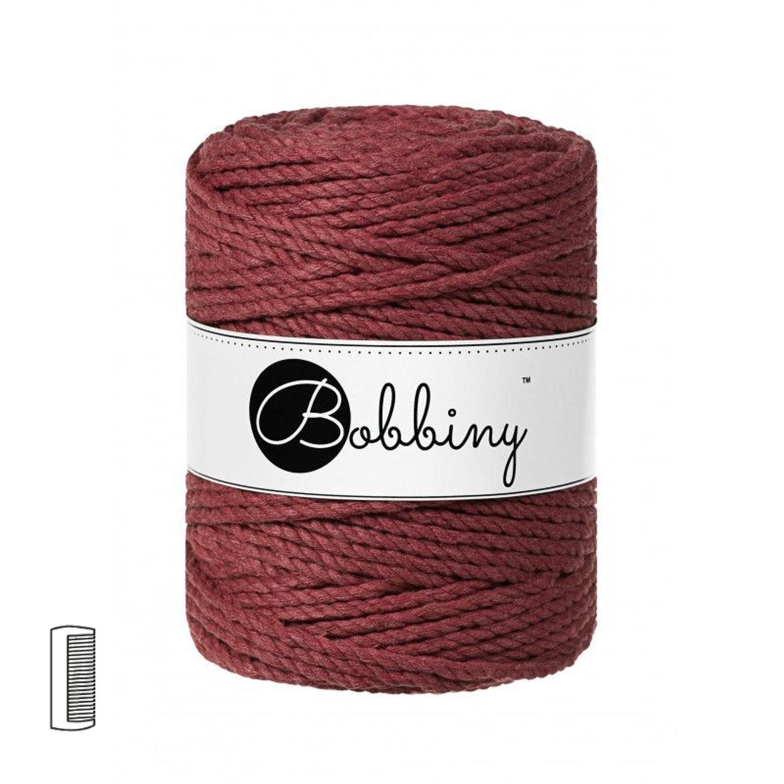 Bobbiny Macramé příze XXL 3PLY 5mm Wild Rose je vyrobena z recyklované bavlny, včetně cívky z recyklovaného papíru. Lze rozčesat. Trojitě stočené šňůry složené ze tří 20 nitkových šňůrek jsou společně pevnější, ale také se dají snadno oddělit pro další samostatné použití. Používájí se při tvoření dekorací rustikálnějšího charakteru.