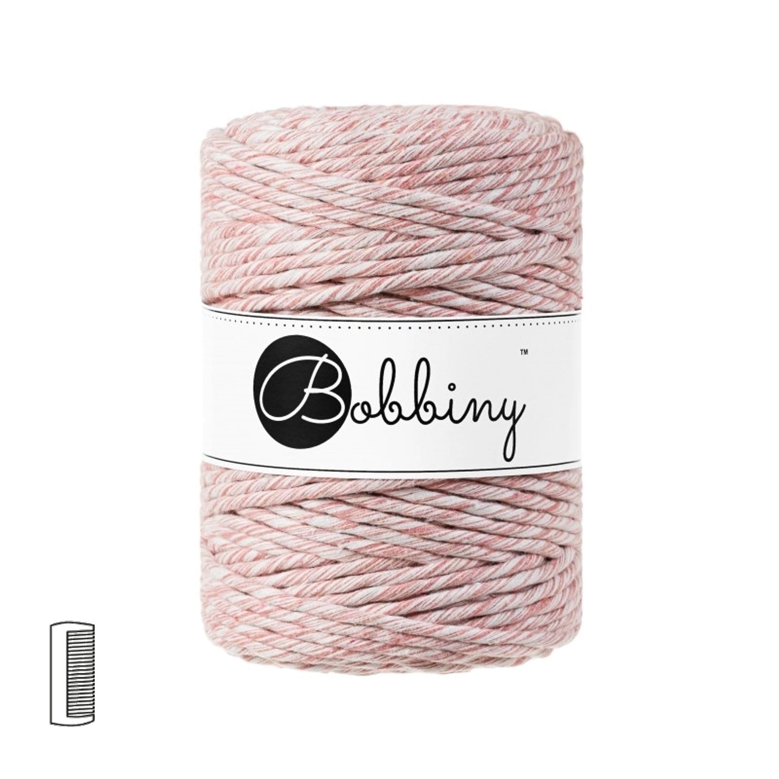 Bobbiny Macramé příze XXL 5mm Strawberry je hrubší točená šňůra složená z 112 vláken, vyrobena z recyklované bavlny a lze rozčesat. Ideální pro macrame techniku. Nejvíce využívaná je při výrobě dekorací na zeď, závěsných květináčů, kabelek a jiných doplňků, nebo při výrobě menších dekorací jako jsou macrame peříčka, či andlílci.