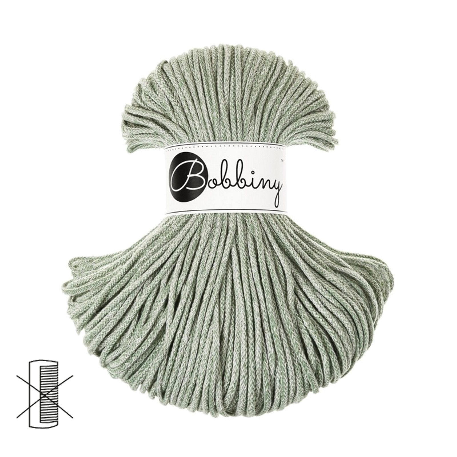 Bobbiny Macramé šňůra Junior 3mm Mojito je splétaná šňůra vyrobena z recyklované bavlny, technikou splétání s pevným bavlněným jádrem. Splétaná šňůra nelze rozčesat. Je vhodná pro háčkování i pletení s háčkem o velikosti 6 - 8 mm. Díky své pevnosti se používá pro hutnější dekorace i užitné předměty, jako jsou košíky, prostírání, koberečky nebo kabelky či tašky.