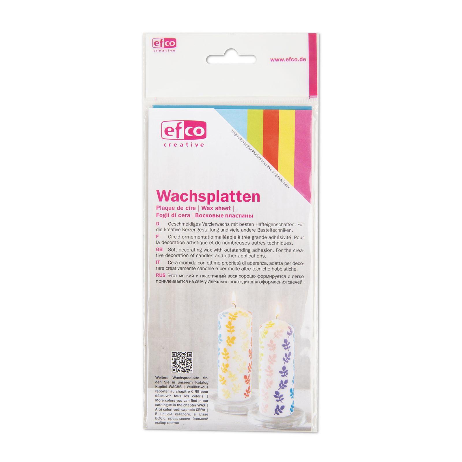 Sadu 5 kusů dekoračních voskových plátů využijete k dekoraci svíček. Pomocí těchto plátků můžete svíčku ozdobit barevnými květinkami, proužky, srdíčky, nápisy a podobnými dekoracemi. Voskové plátky můžete také vrstvit a vytvářet tak jednoduché 3D dekorace. V balení najdete 5 barev, konkrétně světle modrou, zelenou, červenou, žlutou a růžovou. 1 plátek má rozměry 20 x 10 x 0,5 cm. Pro ozdobení svíčky je třeba ostrým vykrajovátkem, nožíkem nebo nůžkami vyříznout požadovaný tvar a sejmout z plátku krycí papír. Voskové plátky drží na svíčce samy, nemusíte používat žádné lepidlo. Stačí je na svíčku mírně přitlačit rukama. Nevystavujte voskové plátky přímému slunci ani je jinak nenahřívejte. Pro použití stačí, aby měly pokojovou teplotu.