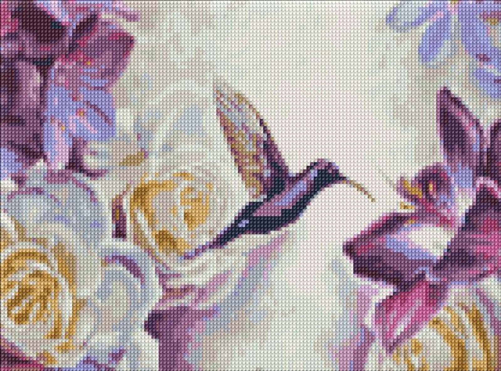 Vytvořte si obraz s kolibříkem technikou diamantového malování, tedy lepením barevných kamínků na předtištěný vzor. Na plátně jsou čísly označené jednotlivé barvy, které je třeba použít a stejně tak jsou označeny pytlíčky s kamínky příslušné barvy. Vše je také rozepsáno na přiložené legendě. Nemusíte se bát, že by vám kamínky došly nebo že by scházely, každé balení obsahuje pár kamínků navíc od každé barvy. Zkrátka stačí si jen vybrat vzor, vzít do ruky aplikátor a začít tvořit. Když bude dílo hotové, nezapomeňte kamínky rovnoměrně přitlačit na plátno (třeba knihou nebo prkénkem), abyste se ujistili, že jsou všude stejně kvalitně přilepené. Sada obsahuje samolepící plátno s předtištěným vzorem a s rámem, barevné kamínky (neboli "diamanty"), pinzetu, aplikátor, zásobník s nálevkou a voskovou podložku.