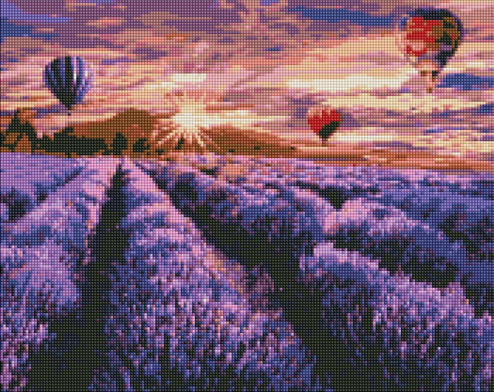 Vytvořte si obraz s motivem vznášejících se balónů nad levandulovým polem technikou diamantového malování, tedy lepením barevných kamínků na předtištěný vzor. Na plátně jsou čísly označené jednotlivé barvy, které je třeba použít a stejně tak jsou označeny pytlíčky s kamínky příslušné barvy. Vše je také rozepsáno na přiložené legendě. Nemusíte se bát, že by vám kamínky došly nebo že by scházely, balení jich obsahuje cca o 30 % více od každé barvy. Zkrátka stačí si jen vybrat vzor, vzít do ruky aplikátor a začít tvořit. Když bude dílo hotové, nezapomeňte kamínky rovnoměrně přitlačit na plátno (třeba knihou nebo prkénkem), abyste se ujistili, že jsou všude stejně kvalitně přilepené. Sada obsahuje samolepící plátno s předtištěným vzorem, barevné kamínky (neboli "diamanty"), pinzetu, aplikátor a 2 další aplikační hlavice, zásobník s nálevkou a voskovou podložku. Balení neobsahuje rám.