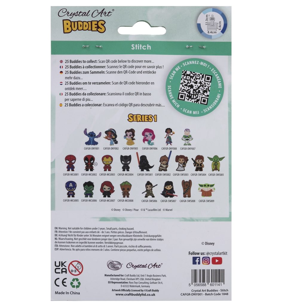 Vytvořte si postavičku Stitche, nejhledanějšího mimozemšťana v celé galaxii, z pohádky Lilo & Stitch od Disney technikou diamantového malování, tedy lepením barevných kamínků na předpřipravený vzor. Na samolepicí dřevěné destičce ve tvaru postavičky jsou vyznačené jednotlivé barvy, které je třeba použít. Stačí si jen vybrat vzor, vzít do ruky aplikátor a začít tvořit. Když bude dílo hotové, nezapomeňte kamínky rovnoměrně přitlačit na destičku (třeba knihou nebo prkénkem), abyste se ujistili, že jsou všude stejně kvalitně přilepené. Aplikování kamínků je velmi snadné. Do hrotu aplikátoru si můžete nabrat trochu vosku z voskového čtverečku a diamanty pak budou v aplikátoru hezky držet. Hotový výrobek můžete postavit do přiloženého dřevěného podstavce a dílko si takto vystavit.