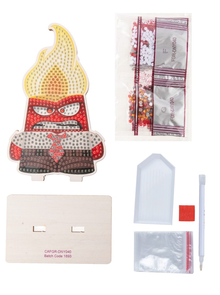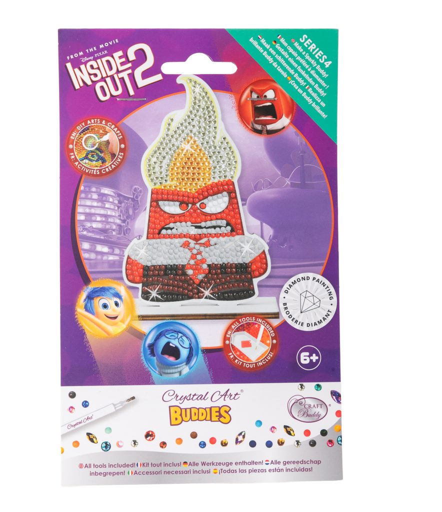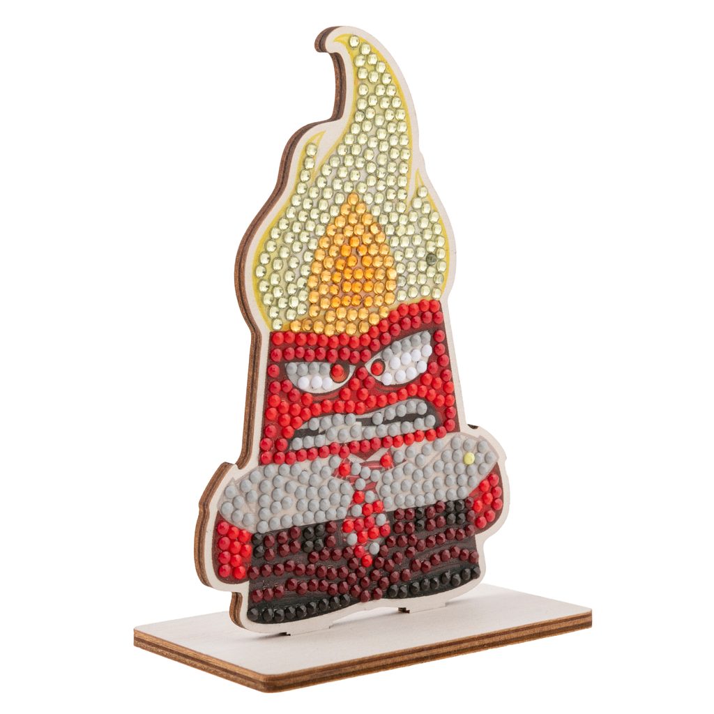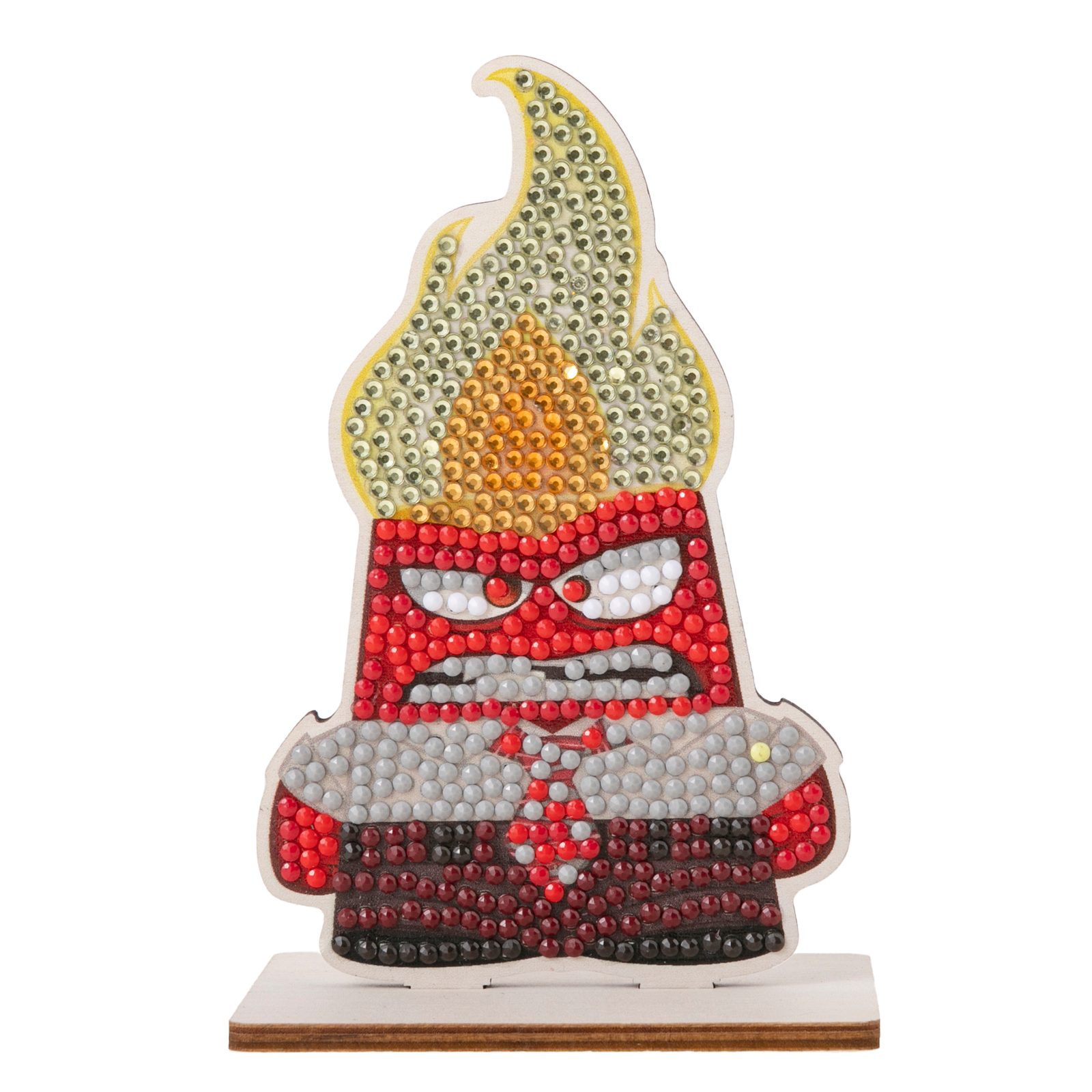 Vytvořte si postavičku Hněvu (jinak také Anger) z filmů V hlavě (Inside out) technikou diamantového malování, tedy lepením barevných kamínků na předpřipravený vzor. Na samolepicí dřevěné destičce ve tvaru postavičky jsou vyznačené jednotlivé barvy, které je třeba použít. Stačí si jen vybrat vzor, vzít do ruky aplikátor a začít tvořit. Když bude dílo hotové, nezapomeňte kamínky rovnoměrně přitlačit na destičku (třeba knihou nebo prkénkem), abyste se ujistili, že jsou všude stejně kvalitně přilepené. Aplikování kamínků je velmi snadné. Do hrotu aplikátoru si můžete nabrat trochu vosku z voskového čtverečku a diamanty pak budou v aplikátoru hezky držet. Hotový výrobek můžete postavit do přiloženého dřevěného podstavce a dílko si takto vystavit.