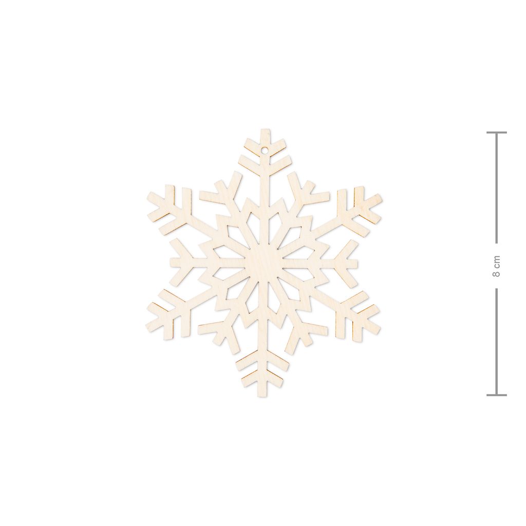 Dřevěný výřez sněhová vločka 8cm č.4 je přírodní výrobek z březové překližky, bez povrchové úpravy. Vyrobte si unikátní vánoční dekoraci, kterou za pomocí akrylových barev, markerů apod. můžete vyzdobit dle vlastní fantazie. Výrobek se hodí i na macramé techniku. Tloušťka materiálu je 4 mm.