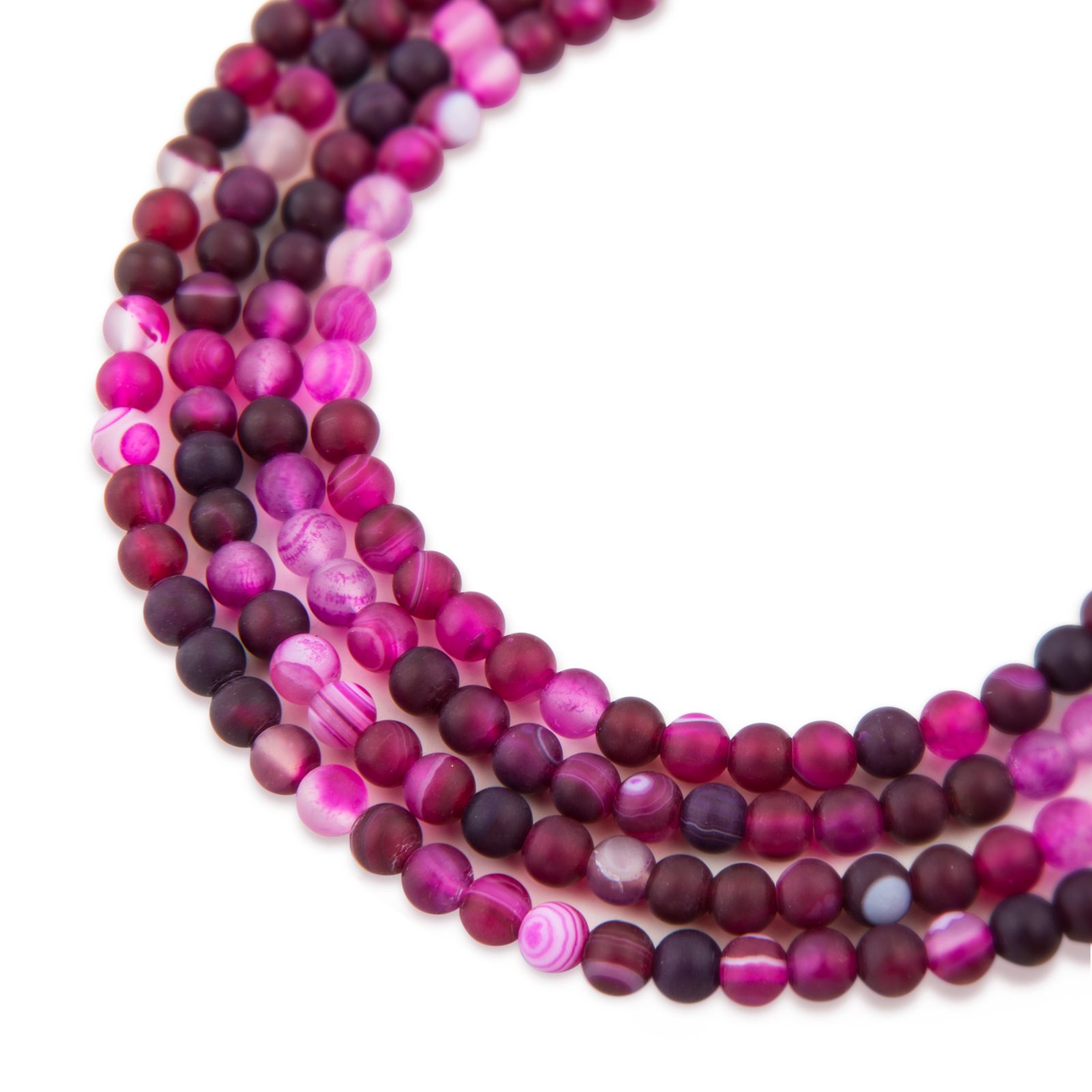 Fialový achát pruhovaný matný (purple banded agate) ve velikosti 4 mm je údajně vhodný pro každého, kdo potřebuje pomoc s vytrvalostí a odhodláním. Má fialovou či lila barvu s bílými či světlejšími pruhy. Je prý tím správným drahokamem, potřebujete-li zharmonizovat a očistit své čakry. Dle pověstí pomáhá s rozvojem kreativity a osobních schopností. Říká se, že má pozitivní vliv na změny, transformaci, na podporu intuice a na schopnost vytvářet harmonické vztahy s druhými lidmi. Bývá spojován s podporou při vyjasňování si a urovnávání citových vztahů. Více o fialovém achátu pruhovaném si přečtěte v našem článku o achátu.