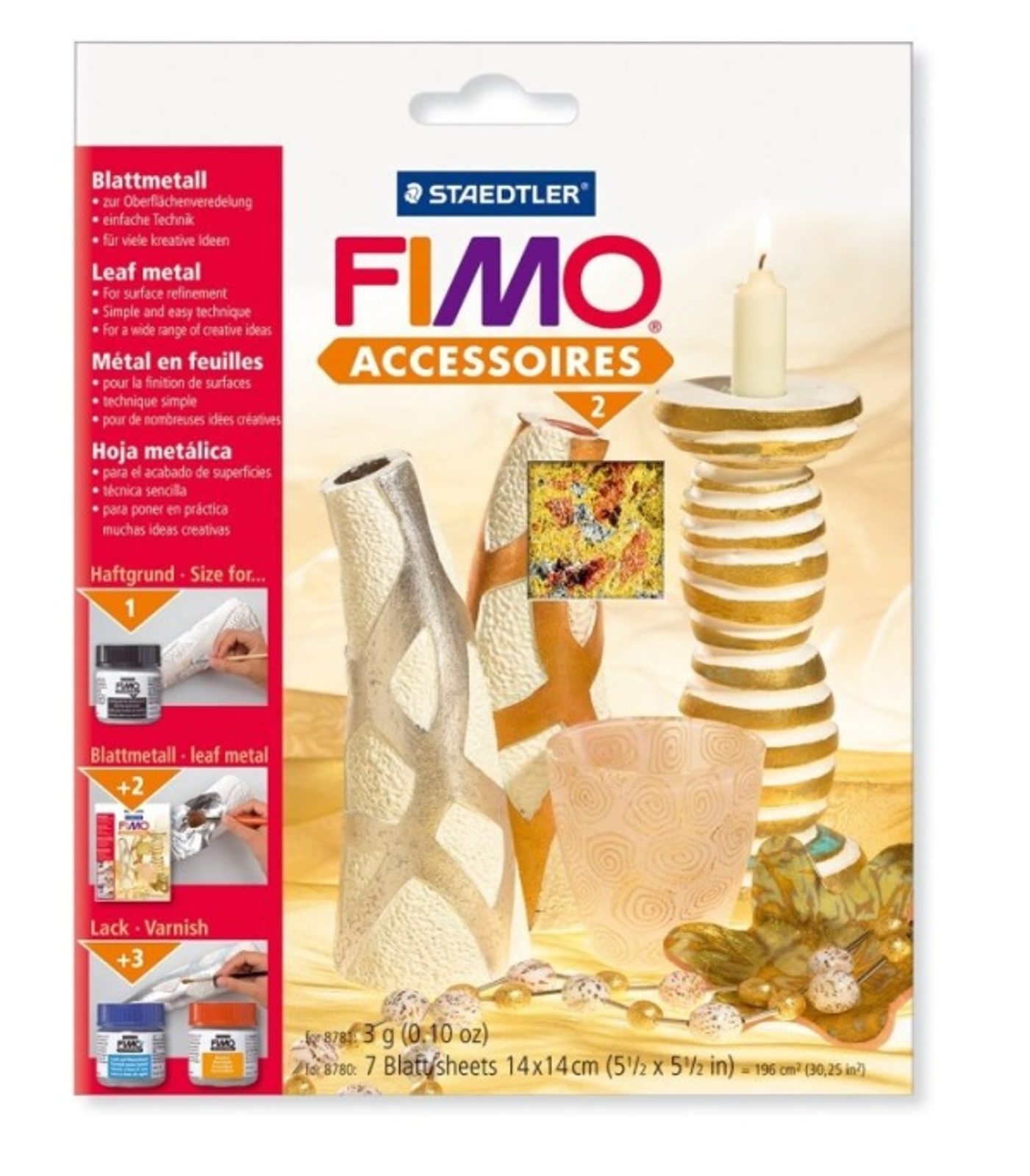 FIMO kovové plátky vícebarevné jsou zajímavou a přitom velmi jednoduchou a nápaditou technikou vhodnou i pro začátečníky. S těmito plátky vytvoříte metalicky lesklé povrchy, které vypadají jako skutečný kov. Technika nanášení je velmi jednoduchá. V balení je 7 metalických plátků.