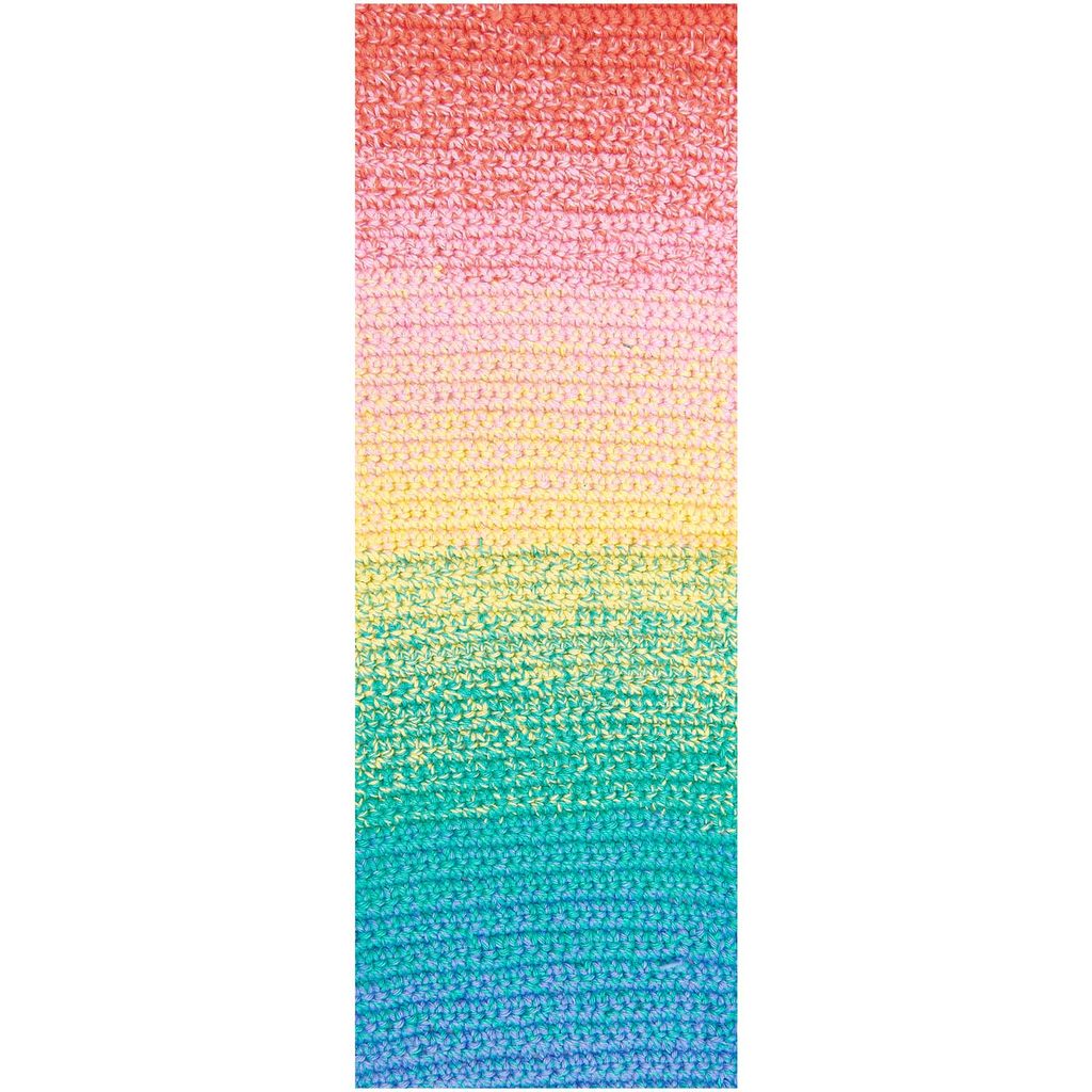 Háčkovací příze Ricorumi Spin Spin v duhových odstínech (018) je vyrobena ze 100% bavlny. Je oblíbená na háčkování různých hraček, postaviček a zvířátek ve stylu amigurumi případně i pro tvorbu doplňků. 50g klubíčko má návin 115 m a pro háčkování doporučujeme použít háček velikosti 3 - 4 mm. Tato kvalitní příze má jemnou strukturu, která je příjemná na omak a originální střídající se barevné tóny. Objevte kouzlo Ricorumi přízí a pusťte se do nových háčkovacích projektů. Návody na použití této příze naleznete v kategorii Knih a návodů.