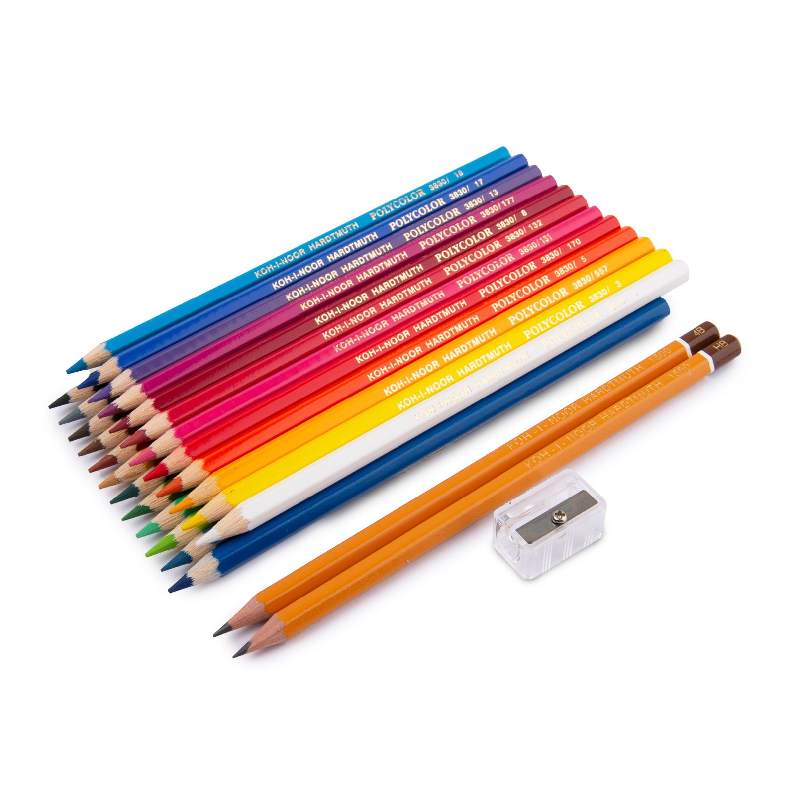 Souprava uměleckých pastelek POLYCOLOR od Koh-i-noor v papírovém balení. Pastelky mají kvalitní tuhu o průměru 3,8 mm s vynikajícími psacími a kreslícími vlastnostmi, které jsou vhodné pro profesionální i hobby použití. Souprava obsahuje 24 kusů barevných pastelek, 2 grafitové tužky 1500 a kvalitní ořezávátko.