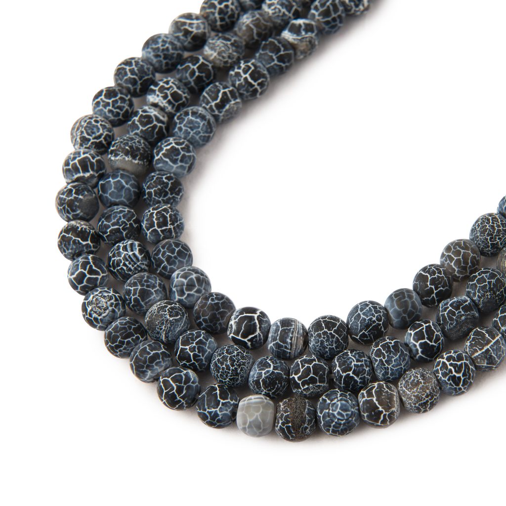 Černý praskaný achát matný (matte crackle agate black) ve velikosti 4 mm je údajně vhodný pro každého, kdo hledá ochranu, potřebuje posílit odhodlání a překonat překážky na cestě ke svému cíli. Má středně či tmavě černou barvu, výjimkou není ale ani šedá. Působí prý pozitivně na všechny, kteří se cítí pod tlakem nebo jsou přecitlivělí. Tento minerál údajně podporuje stabilitu, regeneraci a transformaci. Bývá také považován za kámen ochrany proti nepřejícným lidem. Více o černém praskaném achátu matném si přečtěte v našem článku o achátu.