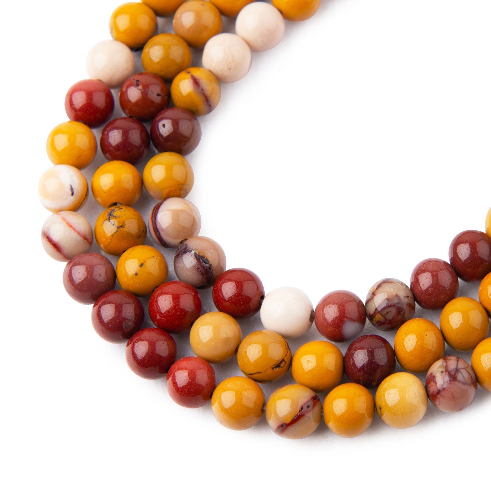 Jaspis Mookait (mookaite jasper) ve velikosti 6 mm údajně poskytuje svému nositeli pocit klidu, stability a rovnováhy. Má hnědou barvu, ale může mít i odstín červené, oranžové, žluté, růžové či zelené. Tento kámen prý svému nositeli pomáhá přizpůsobovat se změnám, podmínkám a adaptovat se na nové situace. Údajně usnadňuje nalezení kreativního řešení. Říká se, že pomáhá rozvíjet intuici a vnímání, usnadňuje rozhodování a podporuje jasnovidnost. Každý korálek je originál, a proto se může lišit o cca 0,5 mm. Více o jaspisu Mookait si přečtěte v našem článku o jaspisu.