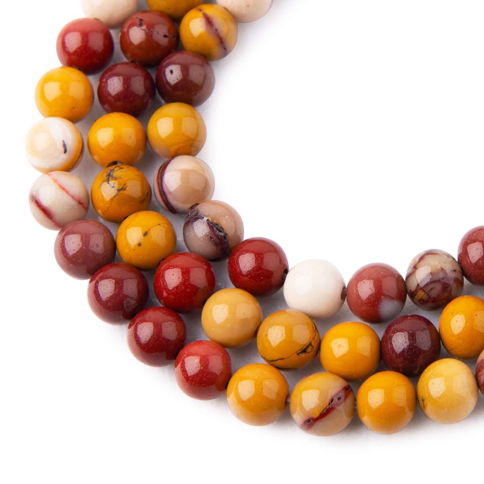 Jaspis Mookait (mookaite jasper) ve velikosti 8 mm údajně poskytuje svému nositeli pocit klidu, stability a rovnováhy. Má hnědou barvu, ale může mít i odstín červené, oranžové, žluté, růžové či zelené. Tento kámen prý svému nositeli pomáhá přizpůsobovat se změnám, podmínkám a adaptovat se na nové situace. Údajně usnadňuje nalezení kreativního řešení. Říká se, že pomáhá rozvíjet intuici a vnímání, usnadňuje rozhodování a podporuje jasnovidnost. Každý korálek je originál, a proto se může lišit o cca 0,5 mm. Více o jaspisu Mookait si přečtěte v našem článku o jaspisu.