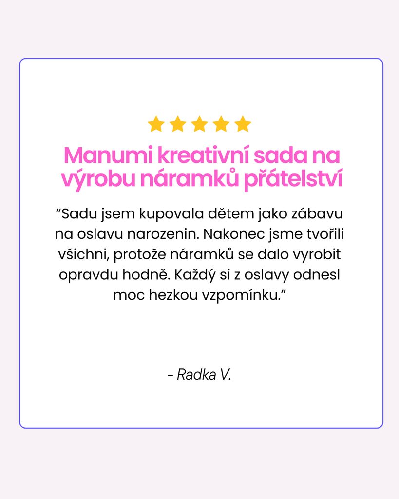 | Doplňující info | Ze sady můžete vyrobit až 10 náramků; Obsah balení: sada polymerových korálků na náramky přátelství, elastomer, gelové vteřinové lepidlo a návod |