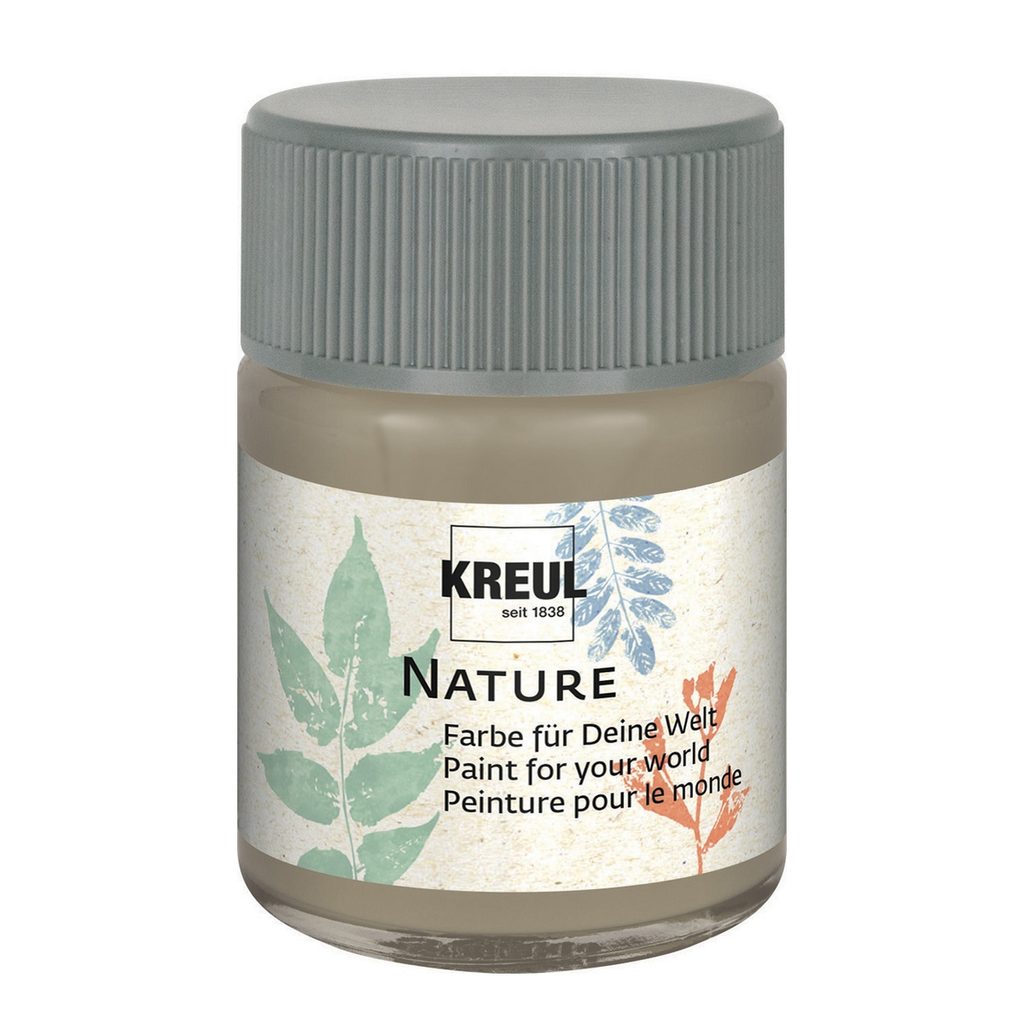 KREUL Nature barva 50ml béžová je matná, krémová, rychleschnoucí a světlostálá barva založená na vodní bázi. Tyto přírodní barvy jsou vyrobeny z 84% obnovitelných přírodních surovin, obalové sklo je vyrobeno z 27% odpadního skla a je 100% recyklovatelné. Šroubovací uzávěr obsahuje 85% recyklovaného plastu a štítek se skládá z 30% recyklovaných vláken. Vhodné na malování na kamínky, mušle, dřevo, papír, karton, beton nebo na keramiku. Pro zvýšení odolnosti nalakujte výrobek lakem ve spreji.
