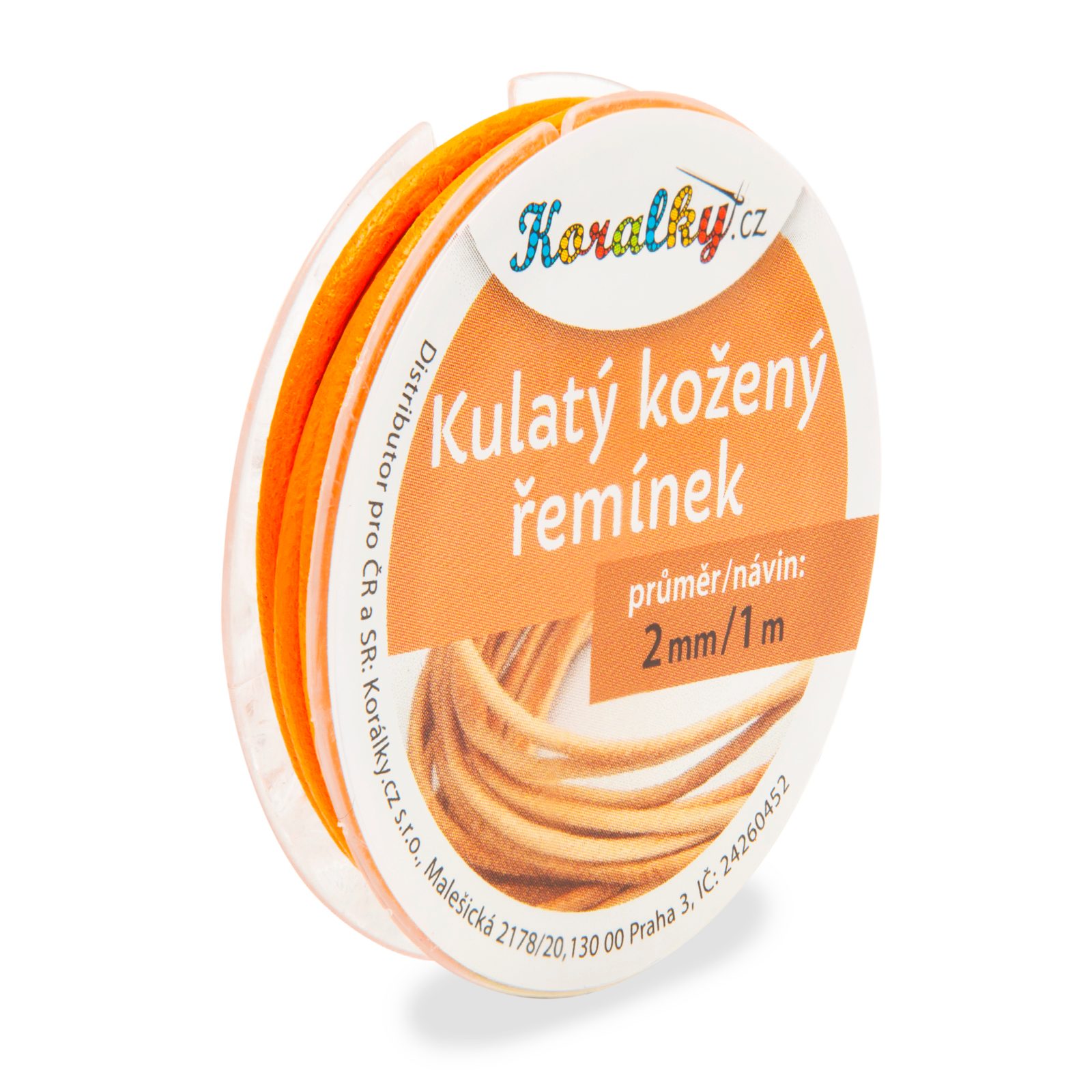 Kulatý kožený řemínek 2mm/1m oranžový č.33 je kvalitní barvený řemínek vyrobený z pravé hověziny. Kožený řemínek je vhodný pro zavěšení přívěsku nebo na výrobu šperků. Vhodně se kombinují s přírodními materiály, dřevěnými korálky a minerály.