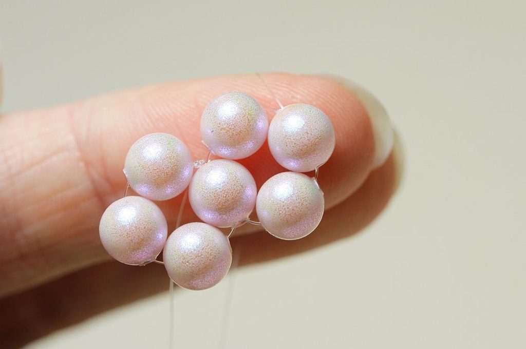 Na vlasec navlékneme 4x 6mm Preciosa Components. Uzavřeme uzlíkem do kroužku.