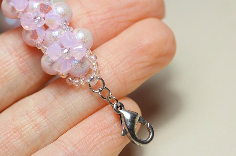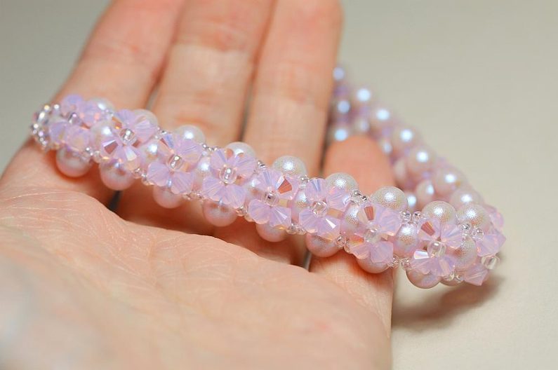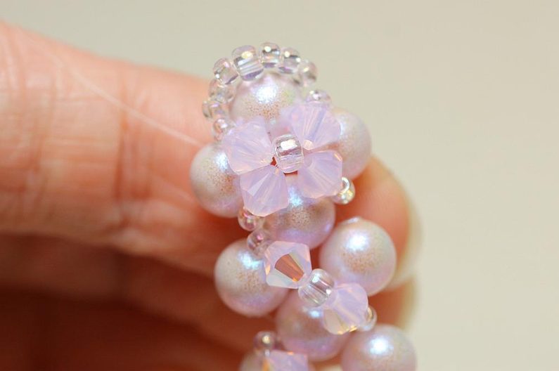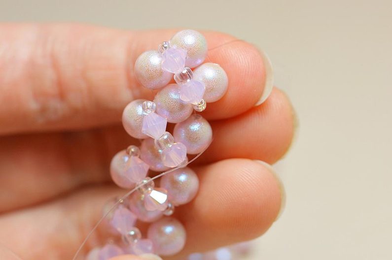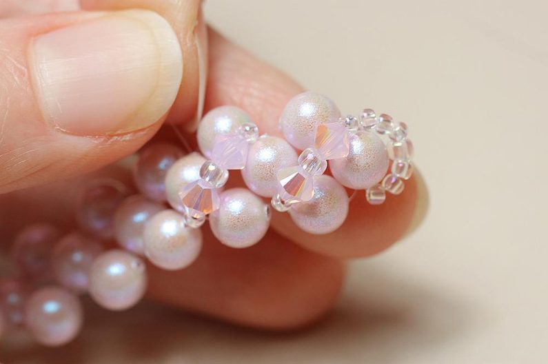 Opakujeme po celé délce náramku, načež pevně zakončíme a zapošijeme vlasec.