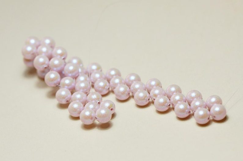 Opakujeme předchozí krok, opět 3x 6mm korálek a tak dále. Tento postup budeme opakovat tak dlouho, dokud nespotřebujeme všechny korálky. Chceme-li delší náramek, než jak nám nyní vychází základ, opakujeme tak dlouho, dokud nám délka nebude vyhovovat (necháme si ale rezervu pro zapínání, které náramek ještě protáhne). Náramek se základním počtem korálků bude cca 18 cm dlouhý.