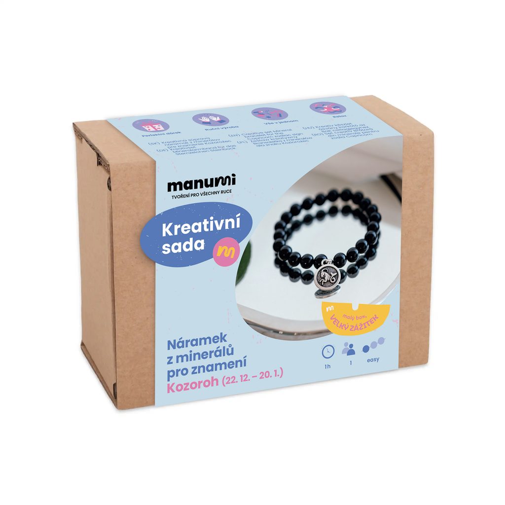 Manumi kreativní sada na výrobu náramku z minerálů se znamením zvěrokruhu Kozoroh je ideálním základem pro výrobu trendy náramku z minerálů a drahých kamenů. Krom toho, že jsou stylovým doplňkem, jsou také oblíbené pro svou přirozenou krásu, přírodní původ a legendami opředené vlastnosti jednotlivých kamenů. I proto jsou tyto šperky vnímány jako malé osobní amuletky – nositelé klidu, síly nebo rovnováhy. Skvěle se kombinují s dalšími šperky a hodí se pro každodenní nošení.