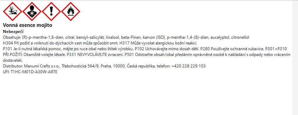 Vonná esence, jinak také éterický olej, je parfémová kompozice s mátovo-citrusovou vůní. Tato vonná esence je určena pro použití k ovonění mýdel nebo svíček domácí výroby. V případě, že chcete vyrobit svíčku, tak můžete použít jakýkoliv svíčkový vosk, nejintenzivněji však nese vůni kokosový vosk. V koncentrovaném stavu se jedná o vysoce hořlavou kapalinu. Proto ji nepoužívejte pro jiný účel, než pro který je určena a ani v jiném, než v doporučeném poměru.