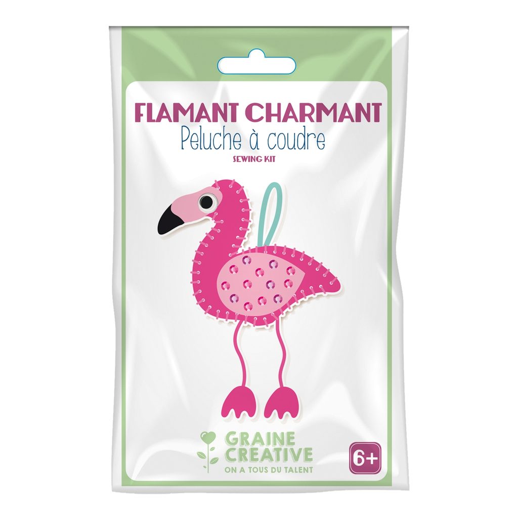 Mini sada na šití obsahuje vše potřebné pro ušití plameňáka, kterého je možné si někam pověsit jako dekoraci. V balení najdete filc ve všech potřebných barvách a v dostatečném množství, bavlnku na šití, tupou plastovou jehlu, nalepovací očičko, nalepovací akrylové ozdobné kameny, stužku na zavěšení, výplň i obrázkový návod. Filc v balení je již nastříhaný a jsou v něm připravené dírky, takže není třeba nic propichovat a samotné skládání je velmi intuitivní. Mimo to bude třeba ještě trocha lepidla na dolepení drobných detailů, které není možné přišít. Sada je vhodná i pro děti cca od 6 let nebo dle uvážení. Výška hotového výrobku je cca 12 cm. Tato sada potěší i jako dárek.