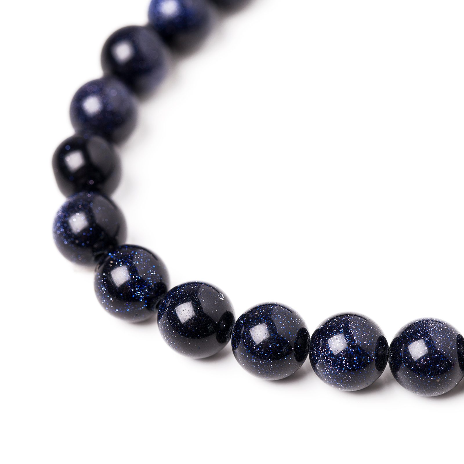 Modrý živec (blue goldstone) ve velikosti 10 mm údajně u svého nositele uvolňuje napětí, snižuje stres a podporuje klid. Má světle modrou až intenzivně modrou barvu, která může být i nazelenalá. Říká se, že má uklidňující účinky a pomáhá vyjádřit myšlenky. Lidé jej také vyhledávají, neboť prý podporuje sebevědomí. Podle legend je silně spojován s intuicí a duchovním rozvojem. Traduje se, že je schopen svému nositeli pomoci s hojením emocionálních zranění. Každý korálek je originál, a proto se může lišit o cca 0,5 mm. Více o modrém živci si přečtěte v našem článku o modrém živci.