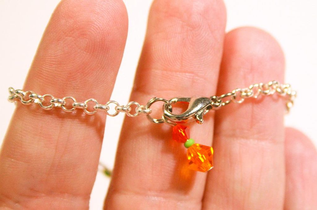 Ke konci řetízku přidáme karabinku a ozdobný příivěsek (Obr. 52). Šťavnatý exotický náramek máme hotovýy (Obr. 53).