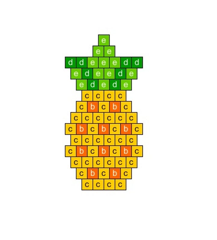 Ustřihneme cca 1 m niti. Podle Diagramu ušijeme ananasy pomocí cihlového stehu (Diagram 01).