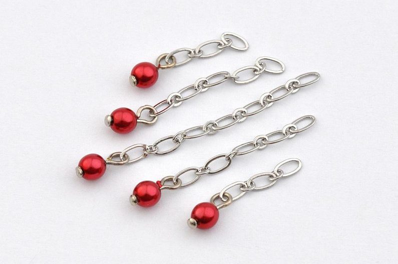 Na konce řetízků navěsíme vždy po jedné naketlované VPK4. Očka nýtů rozevíráme do strany, neroztahujeme je, aby se nedeformovala.