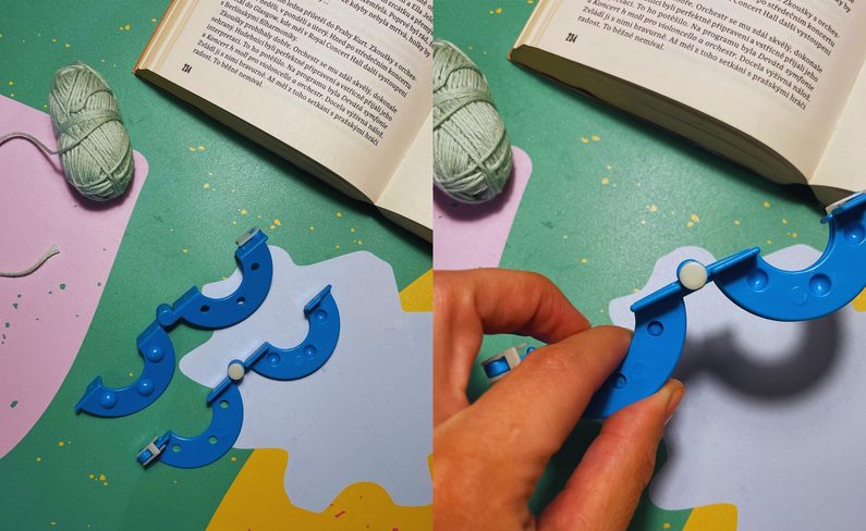 Zvolíte si velikost bambulky a podle toho vyberete pomůcku. Oba díly přiložíte k sobě. (Přesný návod, jak pracovat s pomůckami, najdete u každého balení.)