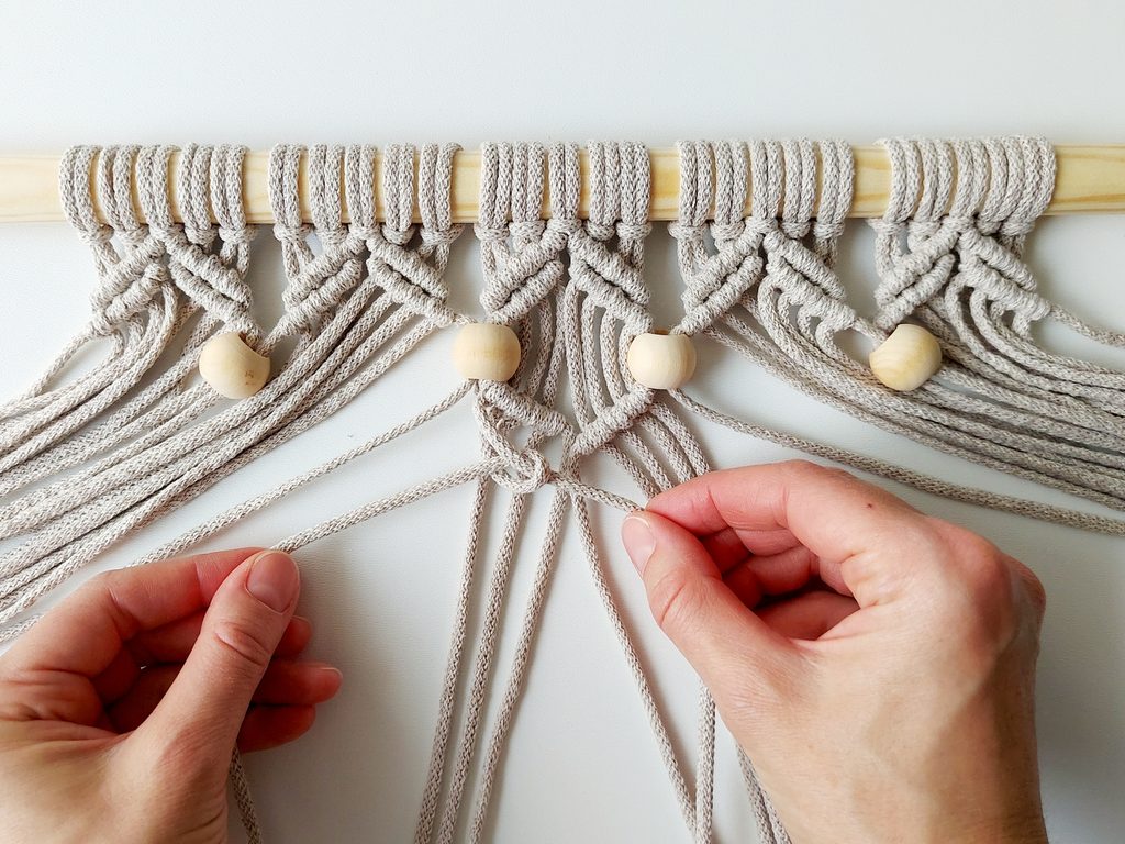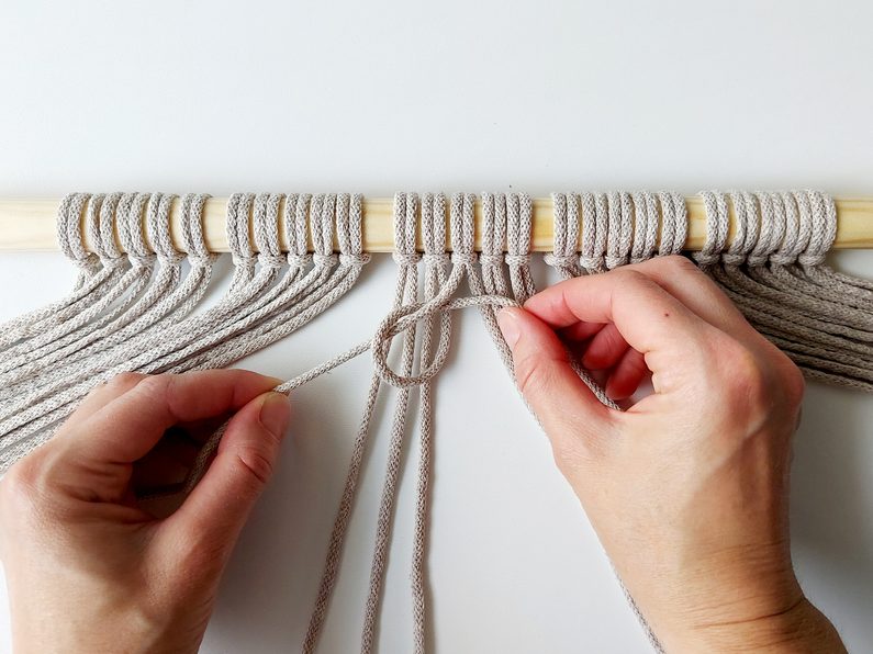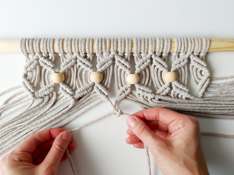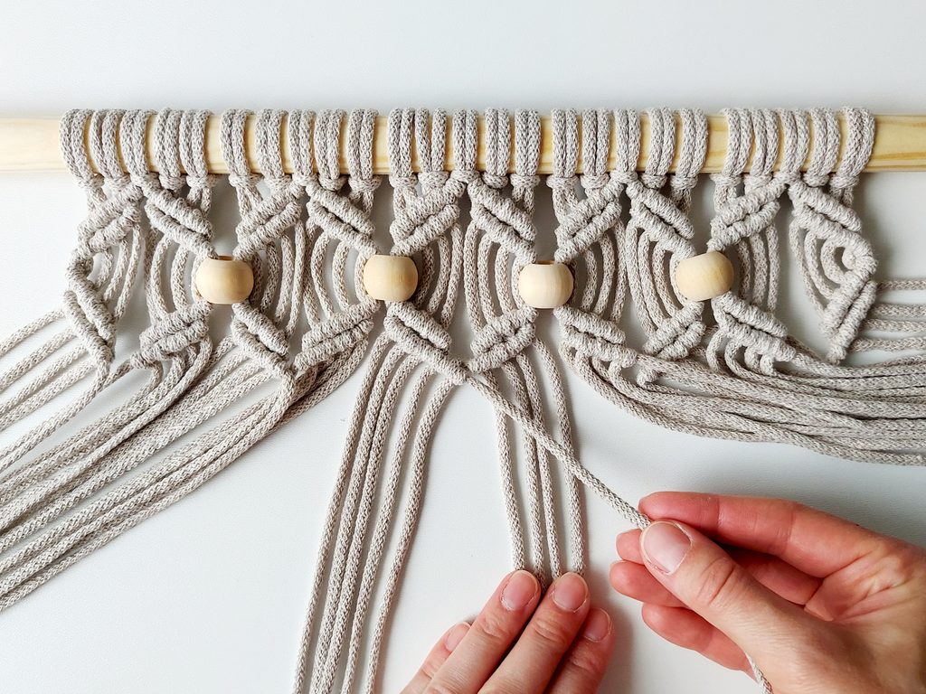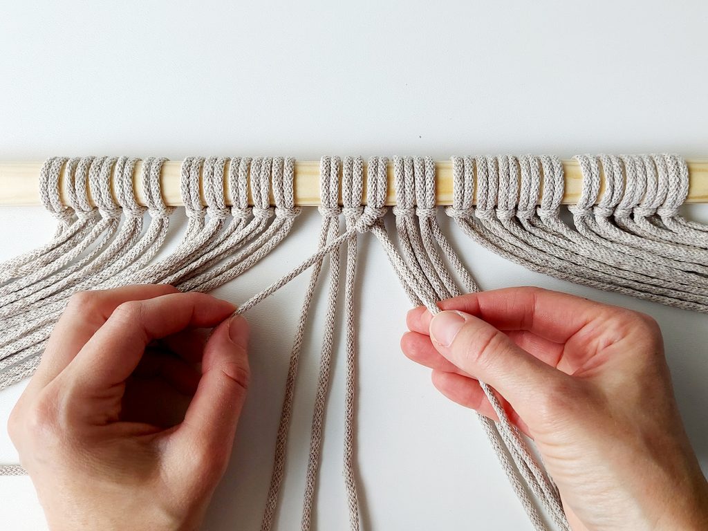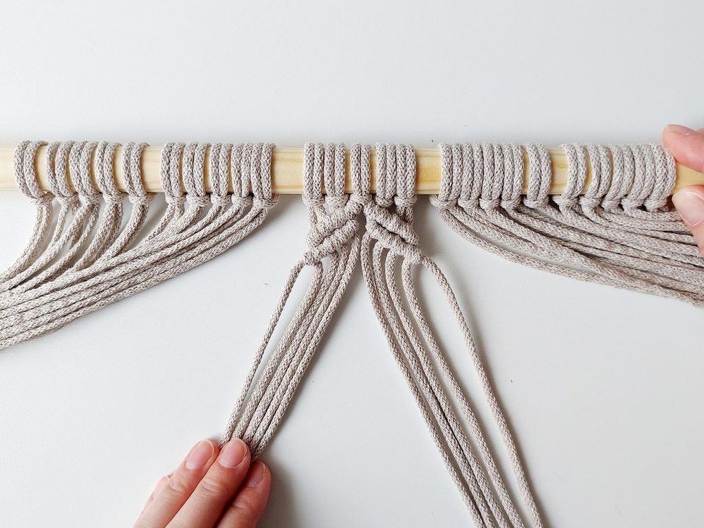 Postup 3 a 4 opakujeme po celé šířce macramé.