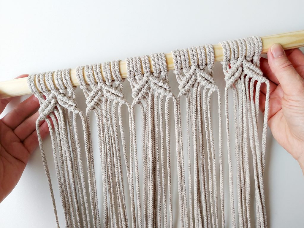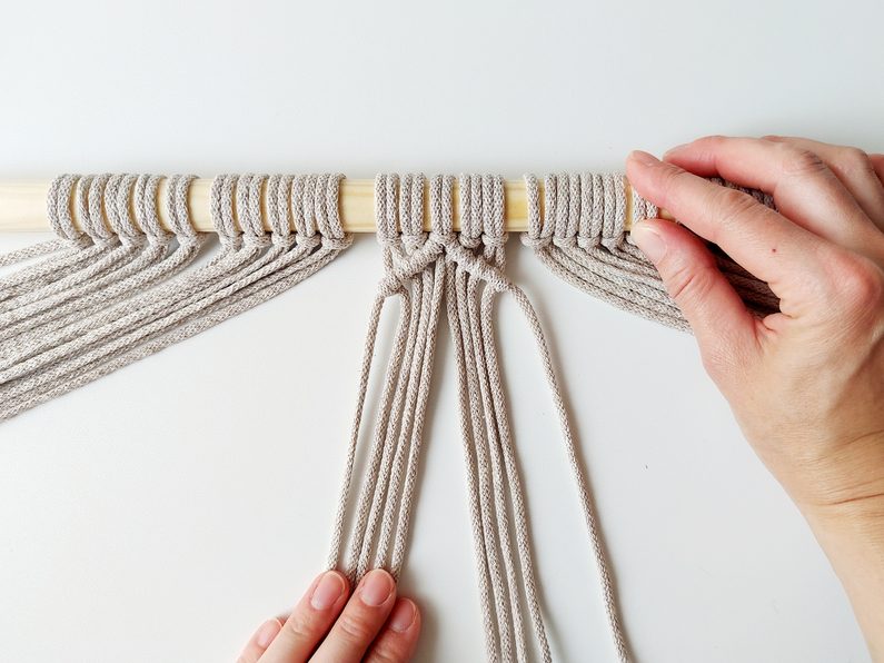 Postup z kroku 7 opakujeme opět po celé šířce macramé.