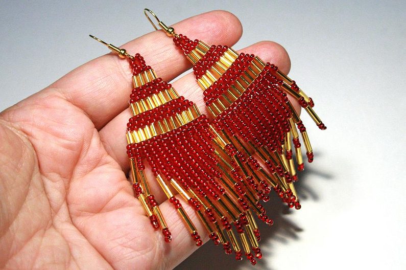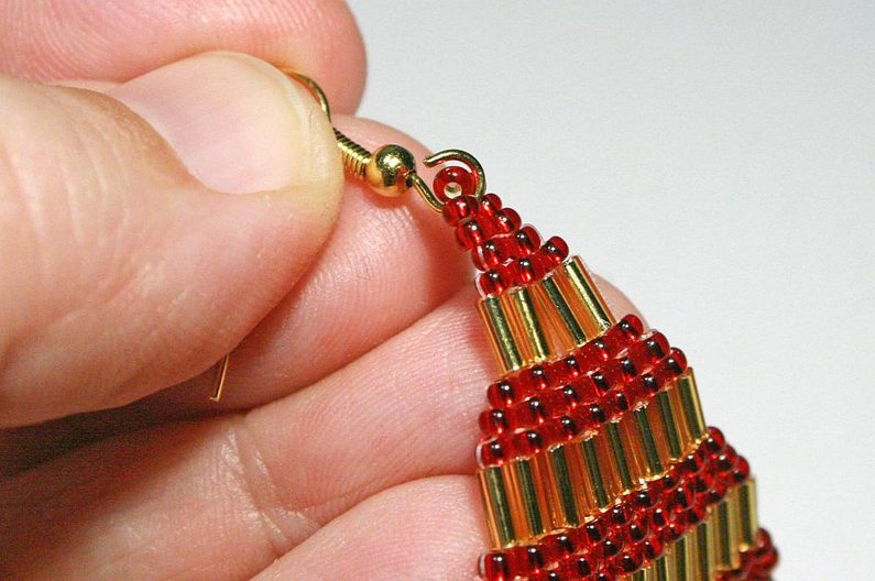 K náušničkám vyrobíme náramek. Uděláme dva menši trojúhelníky z korálků PR10 a T4 podle postupu na náušnice (Obr. 30).