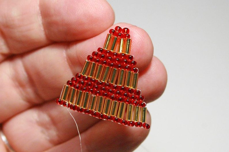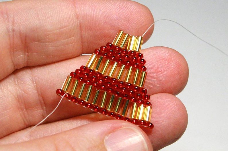 Spojíme trojúhelníky třásně z náhodného mixu rokajlů a trubiček (Obr. 31-34)