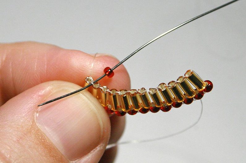 Stejným postupem přišijeme ještě dvě řady korálků PR10 (Obr. 16-17)