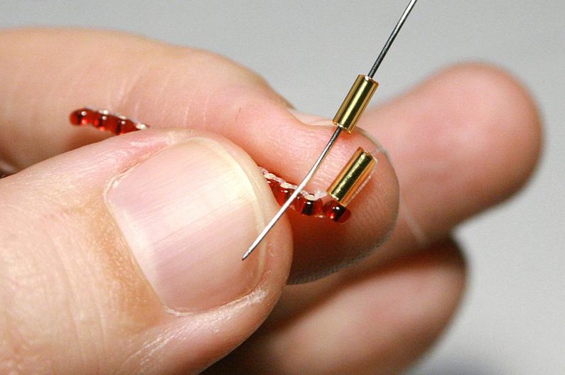 Ušijeme jednu řadu s korálky T4 stejně jako v kroku č. 2 (Obr. 18)