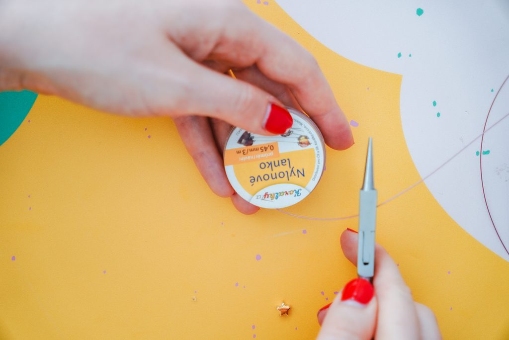 Pomocí kleští si uštípneme 3 ks nylonového lanka, každé jinak dlouhé, abychom mohli vytvořit efekt vrstveného náhrdelníku.