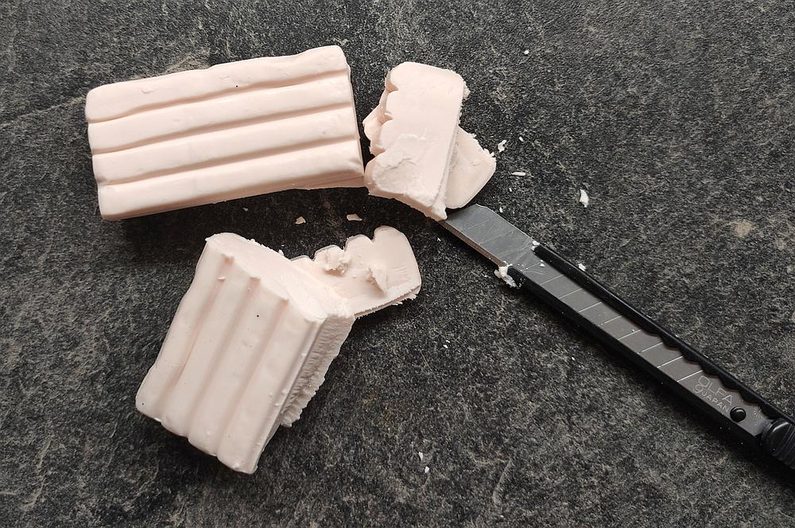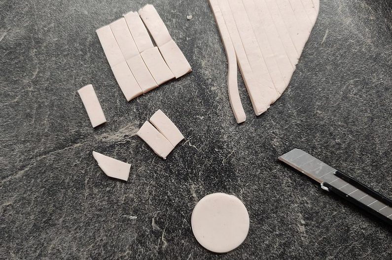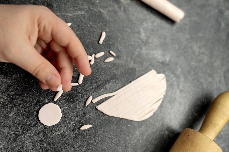 Začneme tím, že si připravíme všechny pomůcky. Ztvrdlou fimo hmotu si v ruce zpracujeme do tvárného plastického stavu.
